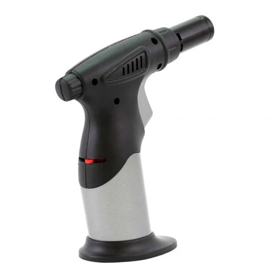 Accenditore a gas con fiamma antivento comodo accessorio per accendere il carboncino dell’incenso, antivento e ricaricabile. Alimentato a gas e fornito con supporto per tenerlo poggiato sul tavolo.