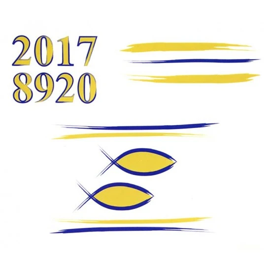 Adesivo per Cero Pasquale con la raffigurazione della Croce, spiga e pesci. Fornito completo dei numeri per comporre l’anno in corso e le simbologie liturgiche dell’alfa ed omega. Può essere utlizzato sui ceri di cera o su quelli in plastica. Made in Italy