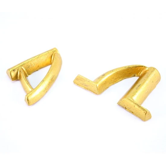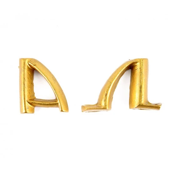 Alfa e Omega realizzati per il Cero Pasquale di colore dorato. Il fissaggio al cero è consigliato con degli spilli riscaldati. Made in Italy