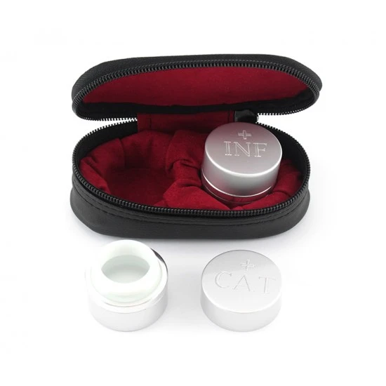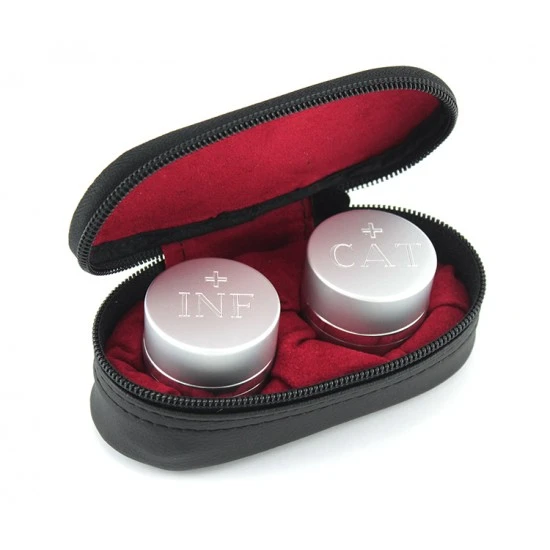 Astuccio con 2 vasetti per oli (Catecumeni e Infermi). I vasetti sono realizzati in alluminio argentato. Sui tappi è incisa una piccola crocetta ed hanno un sistema di apertura sicuro e pratico con filettatura, svita e avvita. L’astuccio porta la chiusura a cerniera. Made in Italy