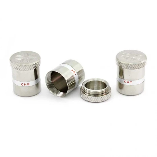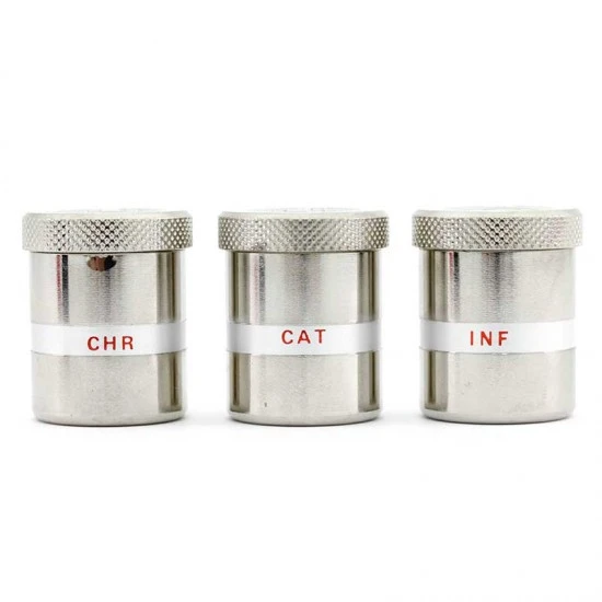 Astuccio con 3 vasetti per oli Sacri (Infermi, Crisma e Catecumeni) realizzato in colore nero con interno in tessuto rosso. I vasetti sono realizzati in ottone nichelato con sistema di apertura sicuro e pratico con filettatura svita e avvita. Made in Italy