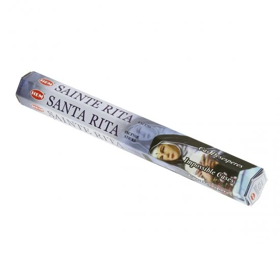 Bastoncini di incenso Santa Rita – Incenso religioso di ottima qualità e gradevole profumazione, fornito confezionato in scatola di cartone decorata contenente 20 bastoncini.