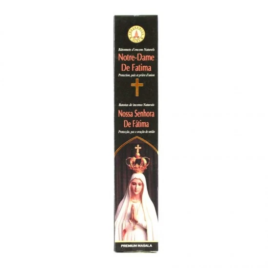 Bastoncini di incenso Madonna di Fatima – Incenso religioso naturale arrotolato a mano di ottima qualità e gradevole profumazione, fornito confezionato in scatola di cartone decorata.