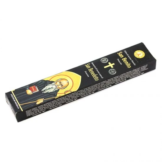 Bastoncini di incenso San Benedetto – Incenso religioso naturale arrotolato a mano di ottima qualità e gradevole profumazione, fornito confezionato in scatola di cartone decorata.