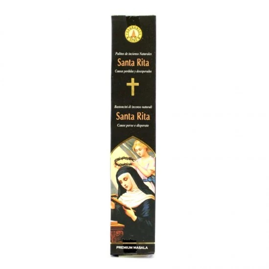 Bastoncini di incenso Santa Rita – Incenso religioso naturale arrotolato a mano di ottima qualità e gradevole profumazione, fornito confezionato in scatola di cartone decorata.