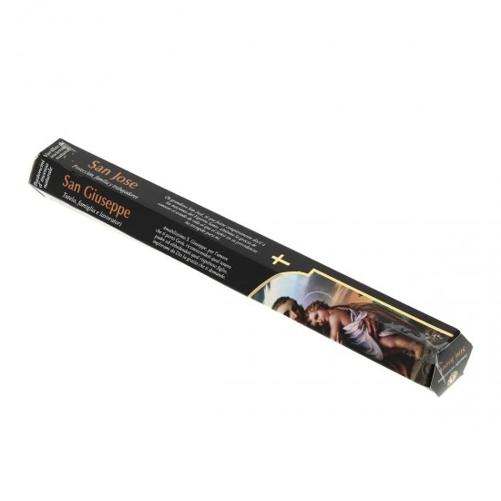 Bastoncini di incenso San Giuseppe – Incenso religioso naturale arrotolato a mano di ottima qualità e gradevole profumazione, fornito confezionato in scatola di cartone decorato con preghiera dedicata al santo in 4 lingue (francese, italiano, spagnolo e portoghese)