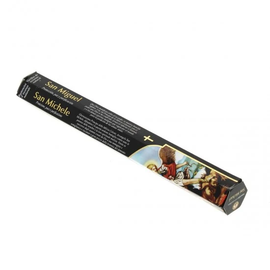 Bastoncini di incenso San Michele – Incenso religioso naturale arrotolato a mano di ottima qualità e gradevole profumazione, fornito confezionato in scatola di cartone decorato con preghiera dedicata al santo in 4 lingue (francese, italiano, spagnolo e portoghese)