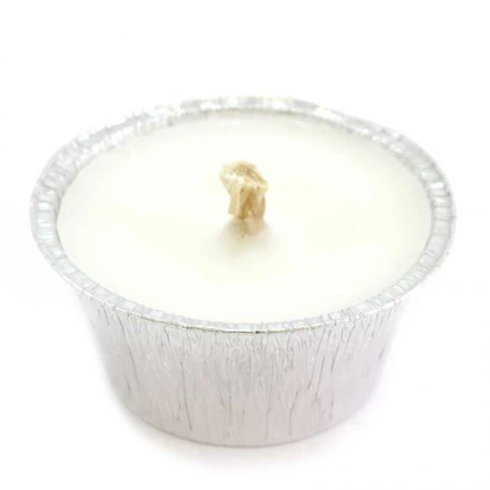Candela in cera bianca inodore in contenitore di allumino. Lo stoppino grande garantisce una fiamma molto resistente al vento adatta anche per esterno, per processioni o cerimonie all’aperto.