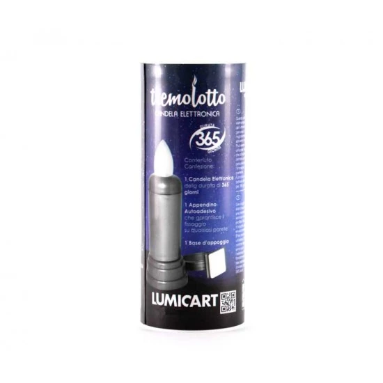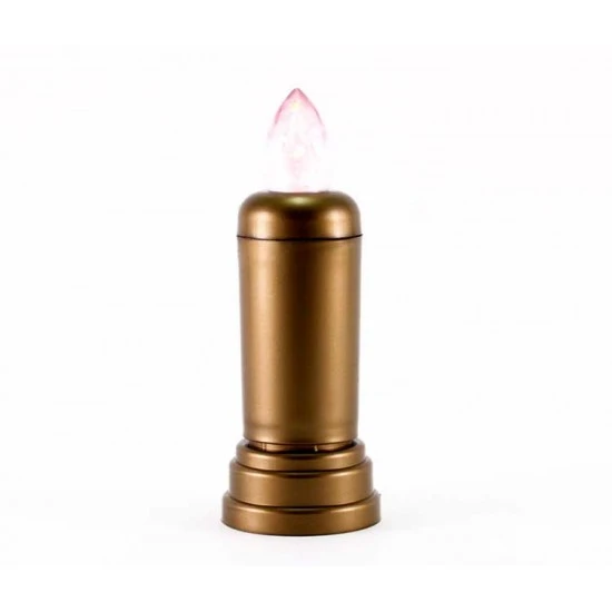 Candela elettronica luce rossa tremolante usa e getta. Realizzata in plastica color bronzo. Funziona a pile non sostituibili ed è munita di interruttore di spegnimento. Fornita completa di base d’appoggio, appendino autoadesivo e scatola cilindrica litografata. Made in Italy