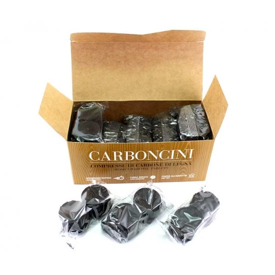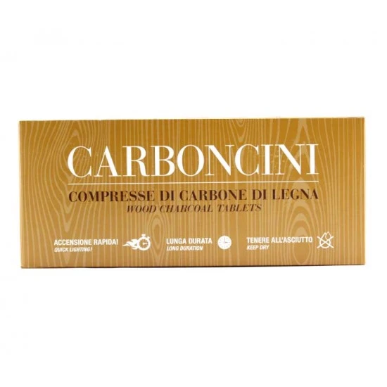 Carbone per incenso di ottima qualità, confezionato in sacchetti di plastica da 6 compresse. Accensione iniziale in 3 secondi, durata totale 40 minuti (03s,40 minuti).