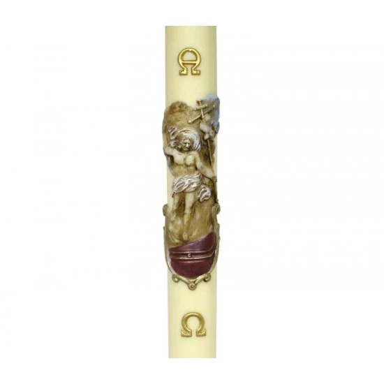 Cero Pasquale in cera d’api di primissima qualità realizzato con applicazioni del Cristo Risorto, alfa ed omega. Diffonde un delicato e gradevole profumo di miele. Made in Italy