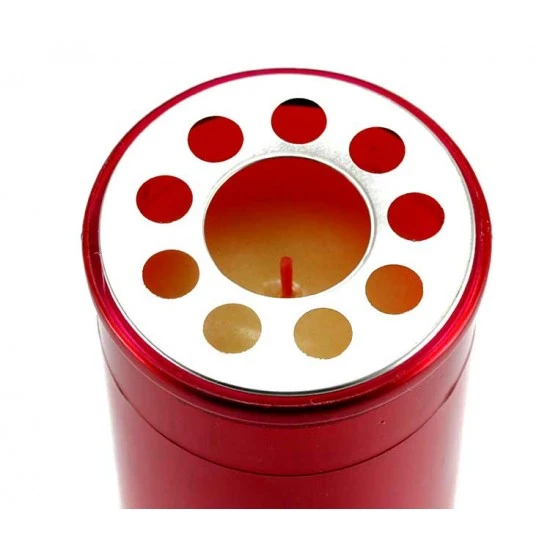 Cerone Liturgico, in cera gialla con contenitore in plastica rossa. La durata di 8 giorni (circa) è garantita dalla qualità della cera. Made in Italy