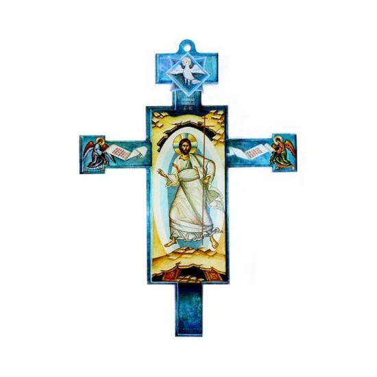 Croce in plexiglas con raffigurazione di Gesù Risorto, fornita in bustina di plastica trasparente contenente immagine di Gesù. Made in Italy