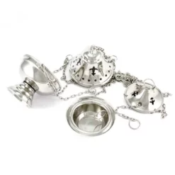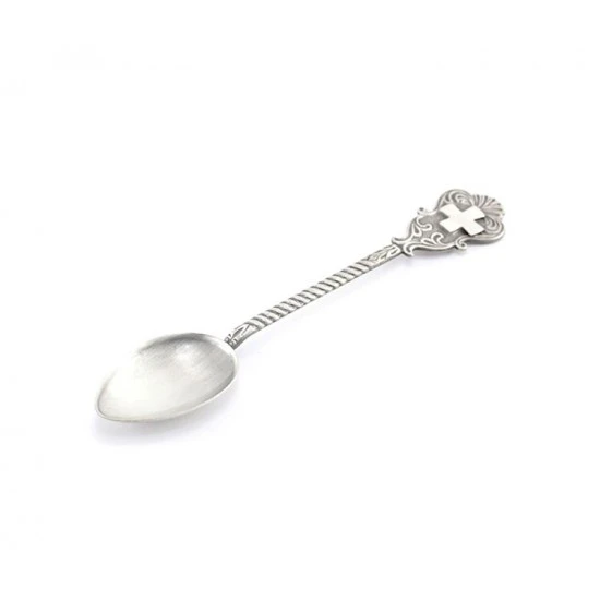 Cucchiaino per incenso realizzato in fusione di ottone con la simbologia della croce. Finitura argentata antica. Made in Italy