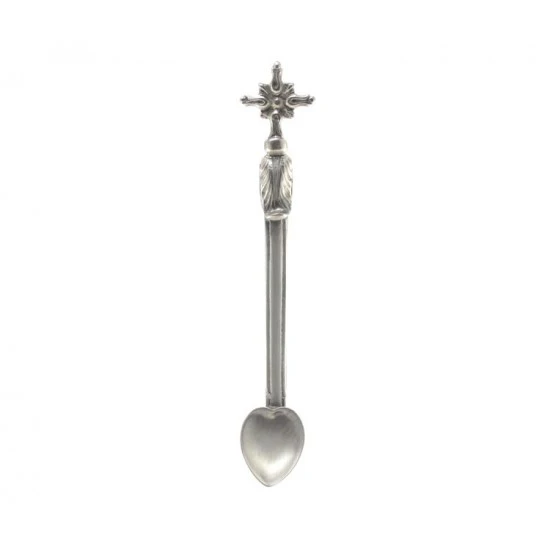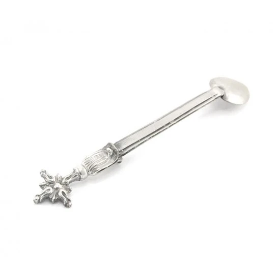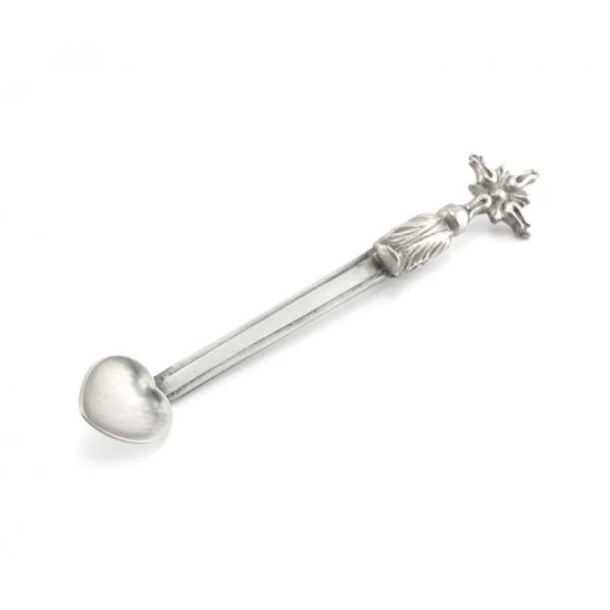 Cucchiaino per incenso realizzato in fusione di ottone con la simbologia della croce. Finitura argentata antica. Made in Italy