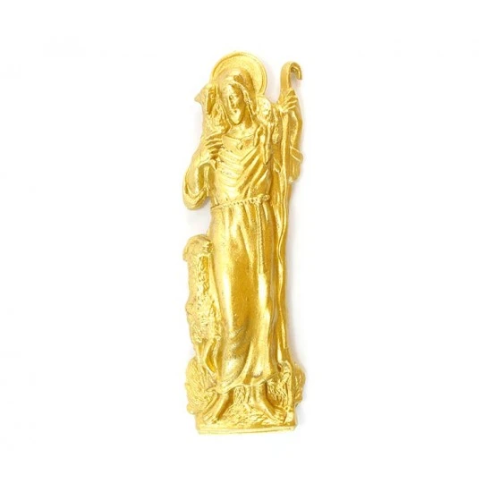 Decalcomania in cera dorata “Gesù Buon Pastore” per cero pasquale. Per essere applicata, questo tipo di decalcomania, va fissata direttamente sul cero con degli spilli riscaltati su fuoco. Made in Italy