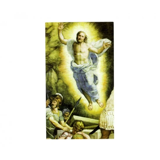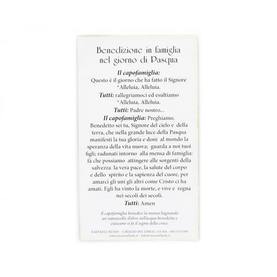 Immagine Gesù Risorto in carta semplice con stampa sul retro della Benedizione in Famiglia nel giorno di Pasqua. Made in italy.