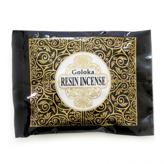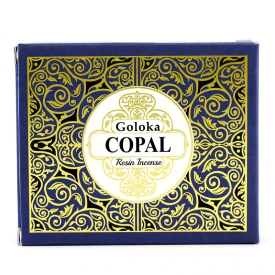 Incenso di Copal Goloka. Incenso in resina naturale in grani piccoli di ottima qualità e gradevole profumazione confezionato in bustina e scatola di cartone decorato.