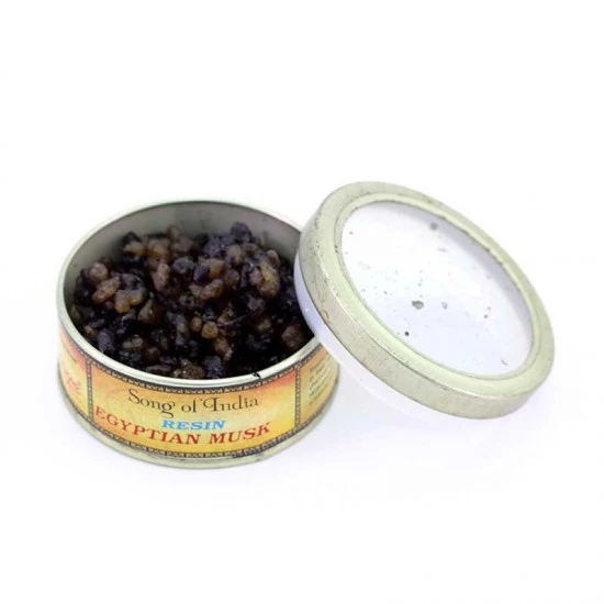 Incenso Egyptian Musk. Incenso grani in resina di ottima qualità e gradevole profumazione, confezionato in barattolo di metallo molto utile per preservare il prodotto dall’umidità.