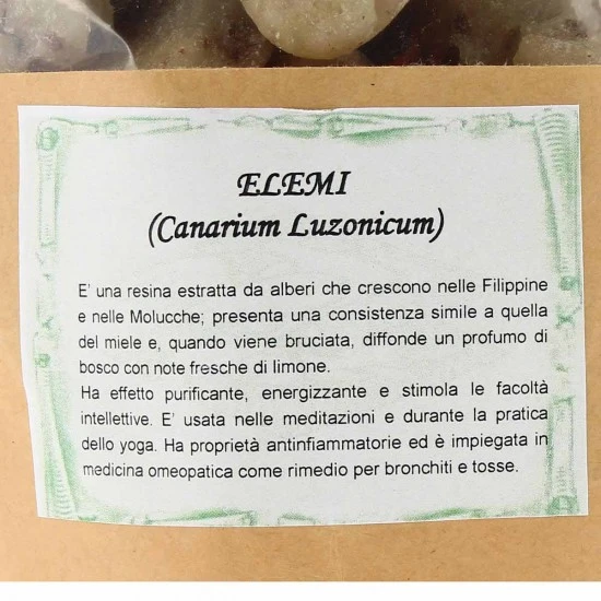 Incenso naturale originale, boswellia di Gerusalemme Elemi (Canarium Luzonicum), resina estratta da alberi che crescono nelle Filippine. Incenso di alta qualità e gradevole profumazione.