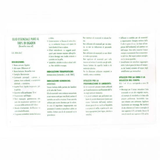 Olio essenziale naturale estratto dall’incenso, adatto per aroma terapia, per deodorare, disinfettare gli ambienti e come repellente per allontanare zanzare e insetti vari.