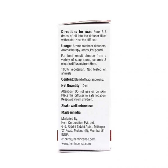 Olio aromatico di alta qualità prodotto dalla Hem realizzato interamente con prodotti naturali, adatto come profumatore ambientale, disinfettare gli ambienti e come repellente per allontanare zanzare e insetti vari.