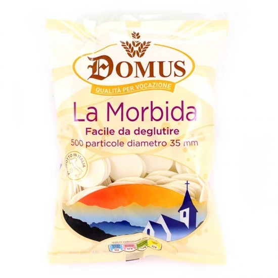 Particole La Morbida per la Comunione dei fedeli, morbide e delicate facili da deglutire. Questo prodotto della linea Domus viene realizzato secondo il rispetto delle normative vigenti in materia di lavorazione dei prodotti alimentari che sono alla base per ottenere qualità e dare sicurezza ai consumatori. Made in Italy