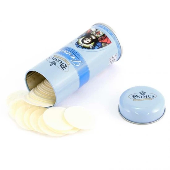 Particole per celiaci confezionate in latta di alluminio adatta per alimenti. Questa confezione permette una maggiore conservazione del prodotto ed è ideale come regalo al Parroco. Prodotto della linea Domus realizzato secondo il rispetto delle normative vigenti in materia di lavorazione dei prodotti alimentari che sono alla base per ottenere qualità e dare sicurezza ai consumatori. Made in Italy