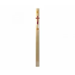 Cero Pasquale In Cera Con Croce Storta Rossa In Rilievo 8×120 Cm