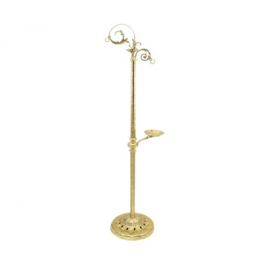 Porta turibolo stile barocco realizzato in ottone dorato lucido, con base di forma circolare in metallo dorato. Munito di doppio gancio nel quale viene appeso il Turibolo e il secchiello e piano per appoggiare la navicella. Produzione eseguita in un piccolo laboratorio artigianale di Arredi Sacri con grande esperienza che utlizza tutti materiali di prima scelta. Made in Italy