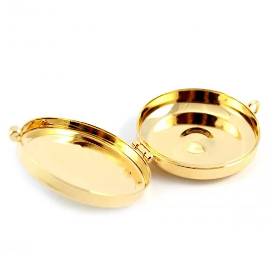 Misura custodia: Altezza 7 cm, Larghezza 6 cm, Profondità 2 cm; Misura teca: Diametro 5,4 cm