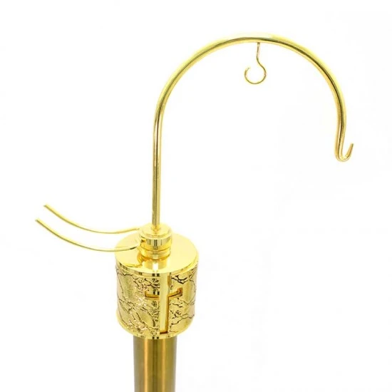 Portaturibolo decorato con Croci traforate realizzato in ottone dorato con base circolare, munito di doppio gancio nel quale si appende il turibolo e supporto nel quale si inserisce la navicella. Made in Italy