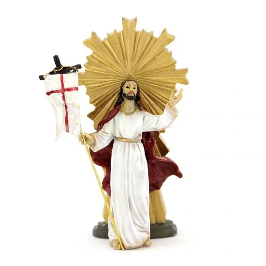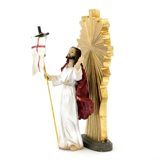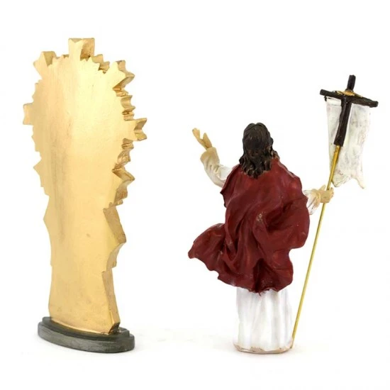 Scena raffigurante la Resurrezione di Gesù, statuina realizzata interamente in resina colorata effetto legno. Prodotto di ottima fattura e ben rifinito nei particolari, fornito confezionato in scatola di cartone.