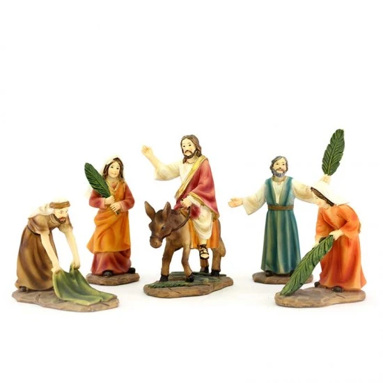 Gesù entra a Gerusalemme, scena composta da 5 pezzi realizzati interamente in resina colorata. Prodotto di ottima fattura e ben rifinito, fornito confezionato in scatola di cartone.