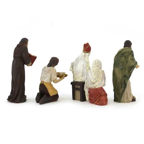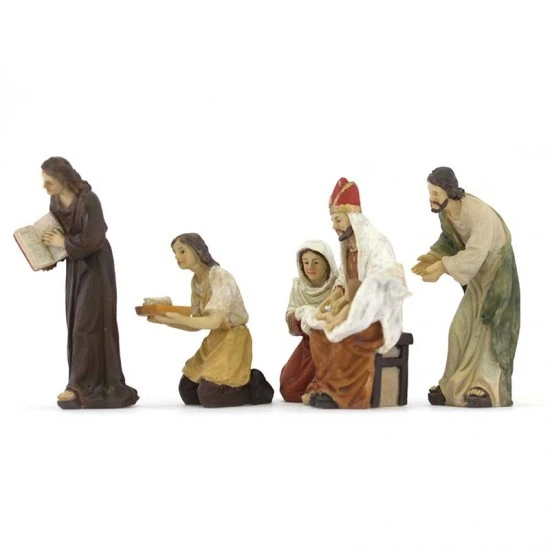Scena vita di Gesù la Circoncisione, composta da 4 statuine realizzate interamente in resina colorata effetto legno. Prodotto di ottima fattura e ben rifinito, fornito confezionato in scatola di cartone.