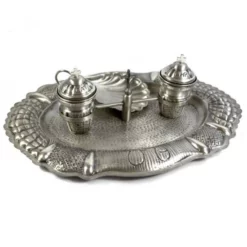 Servizio Da Battesimo In Ottone Stile Antico Piatto 32×24 Cm