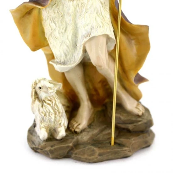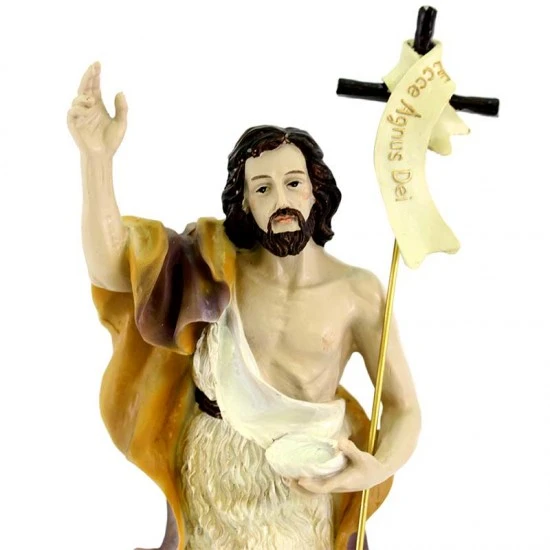 Statua San Giovanni Battista realizzata interamente in resina colorata effetto legno. Prodotto di ottima fattura e ben rifinito nei particolari, fornito in scatola di cartone.