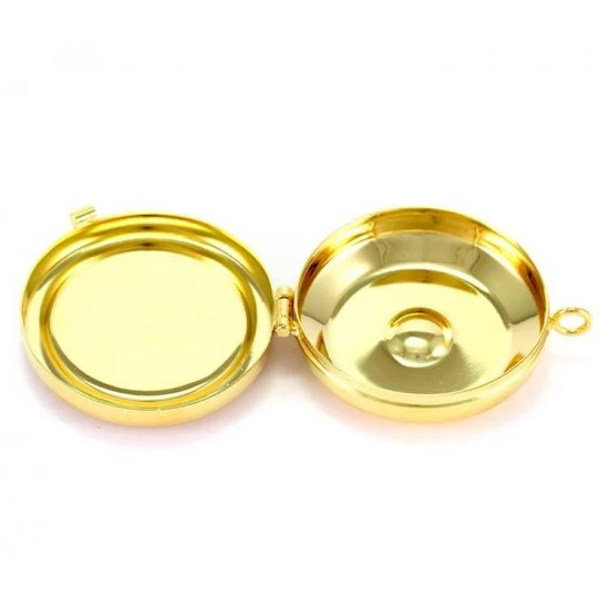 Teca eucaristica realizzata interamente in ottone dorato con placca in legno di ulivo e chiusura ad incastro. Sulla placca in legno è raffigurata la scritta IHS. Made in Italy