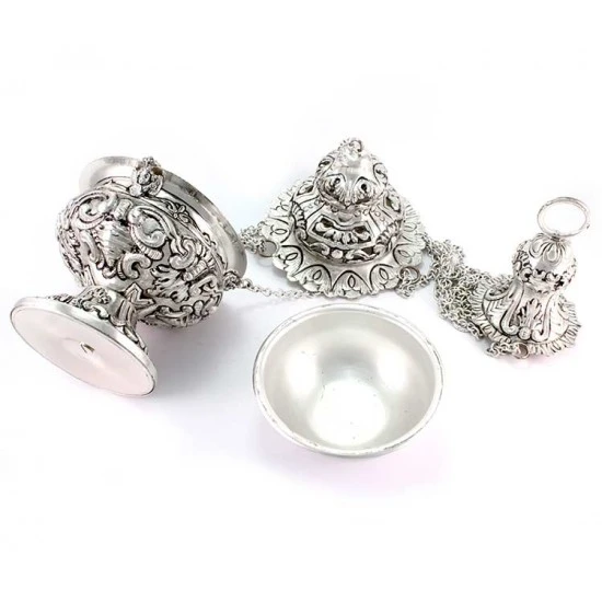 Misura: Altezza turibolo 26 cm, Diametro 17 cm; Altezza navetta 21 cm