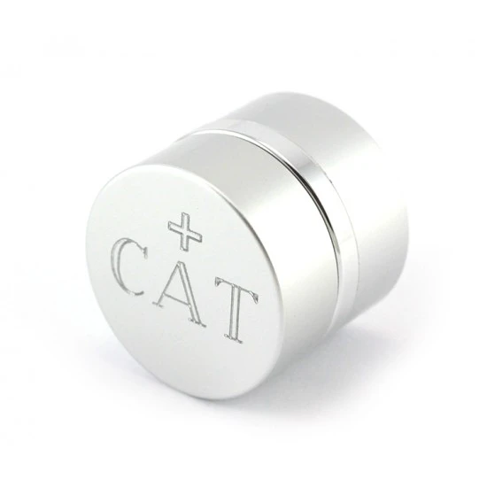 Vasetto per olio Santo Catecumeni realizzato in alluminio argentato. Il tappo è decorato da una crocetta incisa e la scritta CAT, ed ha un sistema di apertura sicuro e pratico con filettatura, svita e avvita, fornito di astuccio in pelle. Made in Italy
