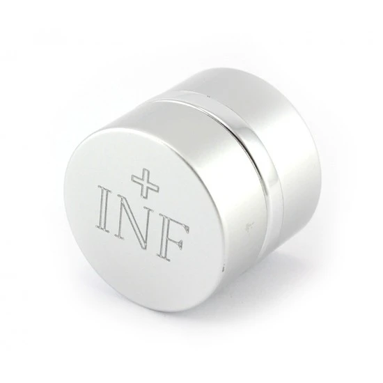 Vasetto per olio Santo Infermi realizzato in alluminio argentato. Il tappo è decorato da una crocetta incisa e la scritta INF, ed ha un sistema di apertura sicuro e pratico con filettatura, svita e avvita, fornito di astuccio in pelle. Made in Italy