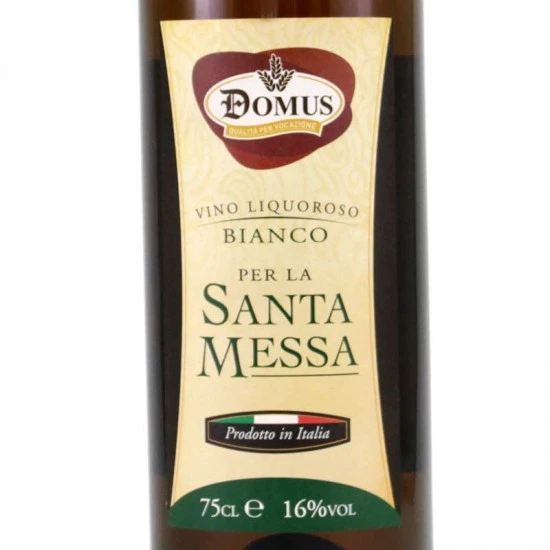 Vino bianco liquoroso per la Santa Messa, prodotto esclusivo dall’azienda Domus. Frutto della vite viene preparato, imbottigliato e sigillato secondo i dettami del Canone 924/&3 del codice di diritto Canonico sotto il controllo del Direttore dell’Ufficio Liturgico Diocesano di Mazara del Vallo. Made in Italy